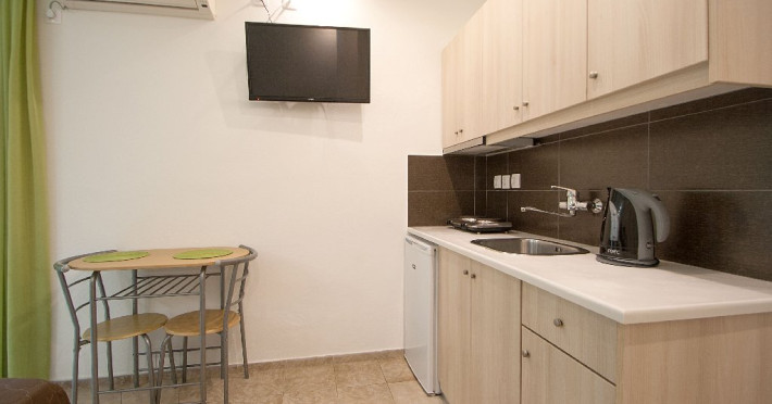 Facilitati camere: toate camerele sunt frumoase, mobilate modern si foarte practic, pentru ca oaspetii Vilei Alexis sa se simta confortabil. Fiecare camera are TV, aer conditionat (contra cost la fata locului, pentru care se plateste optional la proprietar 42 euro pe camera/ saptamana), baie cu dus, balcon sau terasa, chicineta dotata cu plita, frigider, hota si vesela.