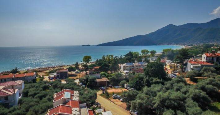 Acest hotel se află la cca 200 de m de o plajă cu nisip cu intrare lină în apă, într-o zonă centrală la Skala Potamias.