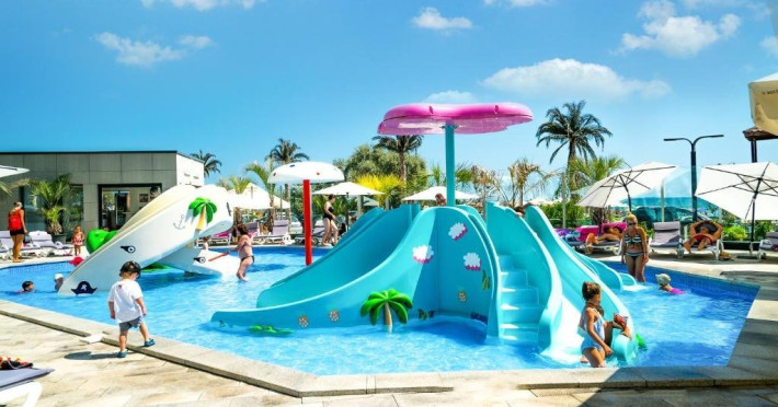 Facilitati hotel: Complexul Alezzi Beach Resort este destinat familiilor cu copii, dispune de piscina pentru adulti si copii, centru SPA, gradini amenajate, 2 locuri de joaca pentru copii, sala de fitness, farmacie, mai multe restaurante si parcare.