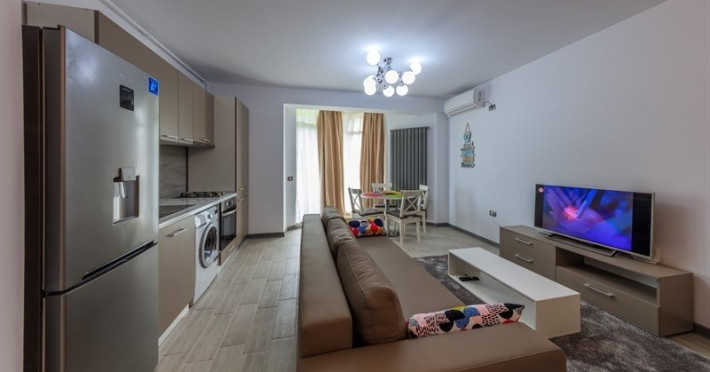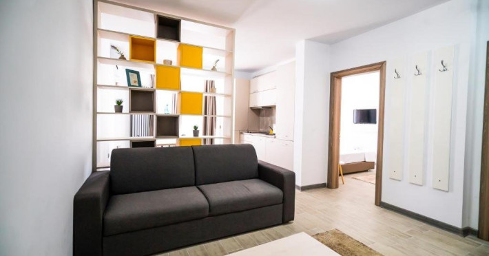 Camere: Toate camerele dispun de: living cu canapea extensibila, TV LED, aer conditionat, chicineta dotata cu plita electrica, cuptor cu microunde, frigider si vesela si baie cu dus.