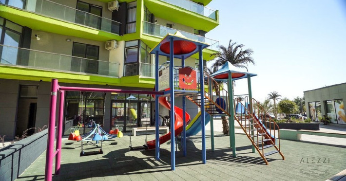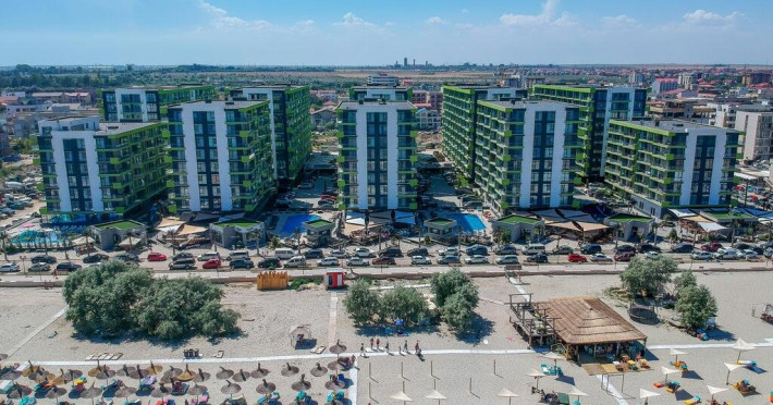 Localizare: Alezzi Beach Mamaia, este un complex nou de apartamente cu vedere lateral la mare, localizat in Mamaia Nord - Navodari, pe faleza statiunii.Descriere: Complexul de apartamente dispune de 160 spatii de cazare, a fost inaugurat in 2019, este construit in imediata apropiere a plajei si ofera o varianta excelenta de cazare pentru turistii care doresc inchirierea unui apartament, in conditii de siguranta sporite, departe de agitatia statiunii Mamaia, dar in imediata vecinatate a plajei.