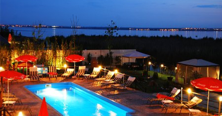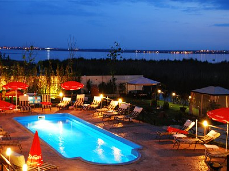 Pensiunea este construita pe un etaj,dispune de salonbufet suedez si bar cu o capacitate de 40 locuri, piscina, barbeque pe terasa amenajata pe malul lacului (30 de locuri) loc de joaca pentru copii si balansoare, spatiu de relaxare, seif la receptie, parcare.