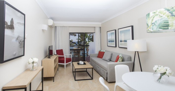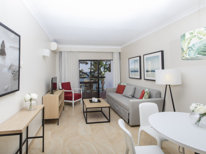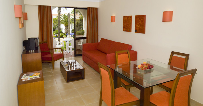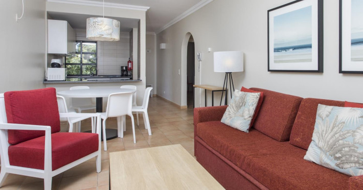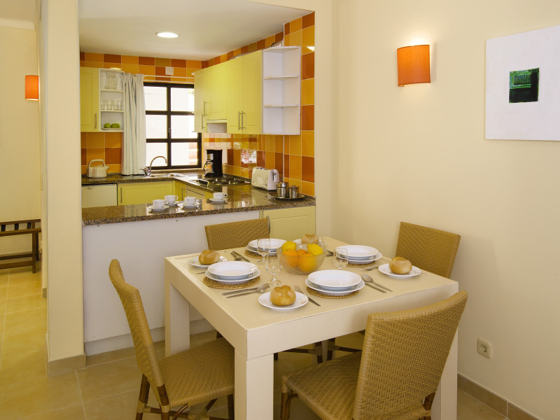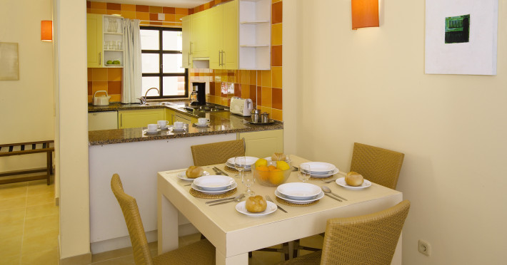 The 216 low-rise apartments are built in the typical Algarve Moorish style and comprehend: air conditioning/heating, satellite TV (with deposit for the remote control at reception), Wi-Fi (extra cost), safety deposit box (extra cost), open kitchen with four electric rings, oven, microwave, electric kettle, toaster, coffee machine and kitchen utensils and bathroom with hairdryer. All bedrooms have twin beds and a wardrobe, the living room includes a convertible sofa-bed for two persons and there is a balcony or terrace. Housekeeping is provided on a limited basis.
