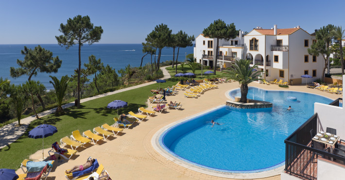 Here you will find one large outdoor swimming pool (including a section for the children) near the bar, and another on the top of the cliffs with sea view. As an alternative, there is also direct and private access to the Santa Eulalia beach. A supermarket is also available for your convenience, as well as plenty of sports facilities: two tennis courts (extra cost) and a football pitch. The children will also be busy with the games room (extra cost), the playground and the miniclub (extra cost and seasonal). Other than this, a 24-hour reception, safety deposit boxes rental, car rental, shuttle service to Albufeira (extra cost), self-service laundry, entertainment, parking and free Wi-Fi in the village bar are also available.