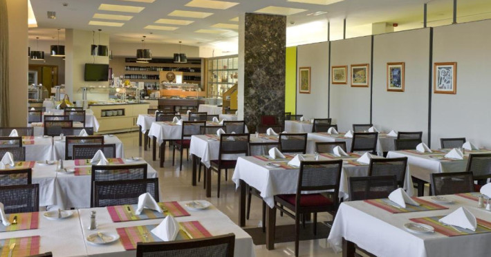 Oaspeții de la Alfagar Village pot lua masa la restaurant, care servește un meniu internațional pe tot parcursul zilei. Există, de asemenea, un bar la piscină care servește băuturi și gustări, precum și un mini-market pentru produse de autoservire.