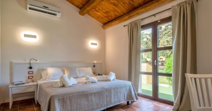 Camerele acestui hotel de tara Alghero Resort sunt puse in valoare de mobilier, perdele, tesaturi si lampi de ceramica, toate realizate de mesteri sardinieni.