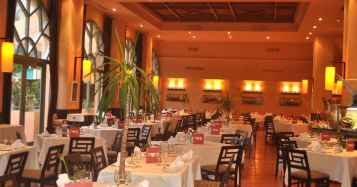 La Alhambra Thalasso oaspeții au la dispoziție 5 restaurante unde pot savura mâncăruri delicioase, în stil bufet sau à la carte. Preparate din bucătăria internațională așteaptă să fie degustate în fiecare zi la micul dejun, prânz și cină. Masa poate fi servită atât în interior, cît si în aer liber, pe terasă, în funcție de vreme. 3 baruri sunt disponibile cu o ofertă variată de băuturi răcoritoare și alcoolice.