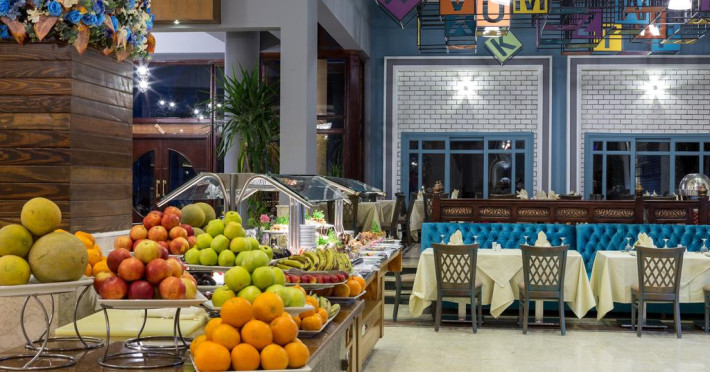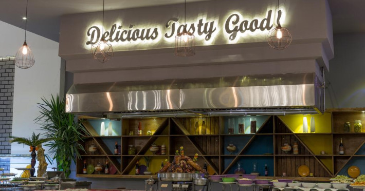 La Ali Baba Palace oaspeții au la dispoziție 3 restaurante unde pot savura mâncăruri delicioase în stil bufet. Masa poate fi servită atât în interior, cît si în aer liber, pe terasă, în funcție de vreme. 3 baruri sunt disponibile cu o ofertă variată de băuturi răcoritoare și alcoolice. În cadrul proprietății există și un snack bar care servește băuturi și gustări.