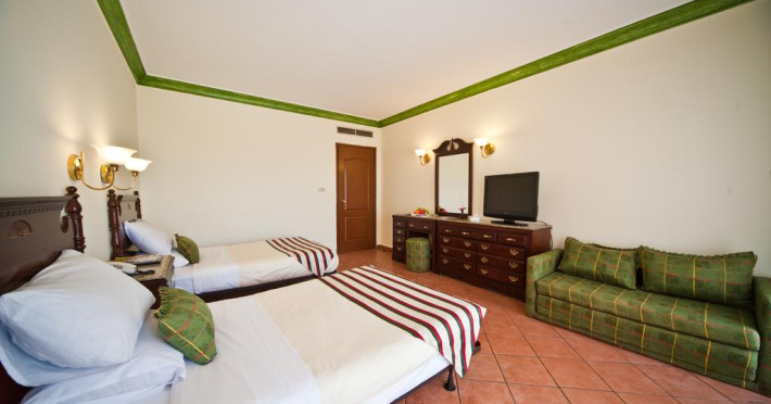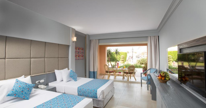 Sunt disponibile 740 camere. În camere există baie cu cadă sau duș prevăzută cu foehn. Fiecare cameră dispune de minibar. Oaspeții pot solicita serviciul de room service pentru a servi masa sau diverse băuturi. Camerele luminoase de la Ali Baba Palace sunt dotate cu mochetă, aer condiționat, Tv cu canale prin satelit și seif. Unele camere au balcon cu vedere la grădină sau la piscină. Oaspeții au acces la serviciul Wi-fi în camere contra cost. Curățenia in cameră se face zilnic. Toate camerele spațioase de la Ali Baba Palace au canapea în living, ceea ce oferă un plus de confort. Proprietatea oferă camere pentru nefumători.