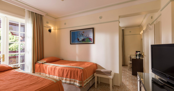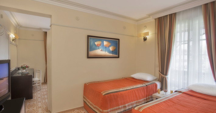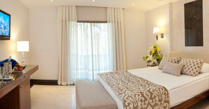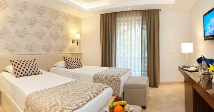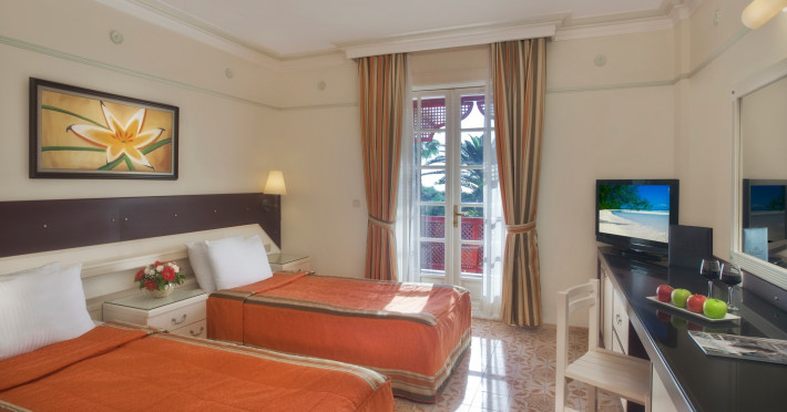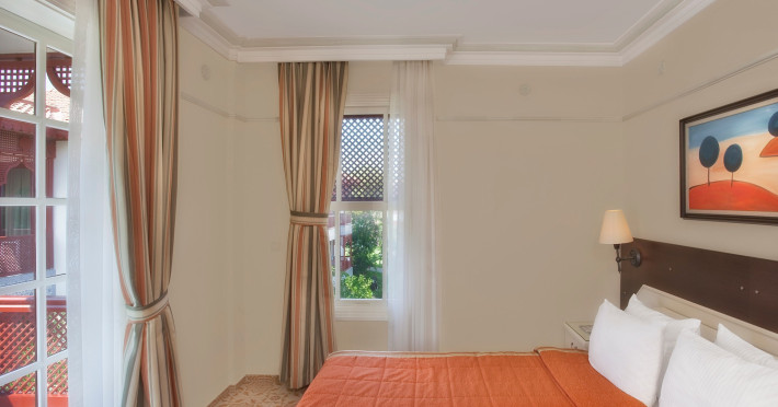 Unele camere au balcon cu vedere la mare, unde oaspeții pot admira apusul sau răsăritul soarelui. În camere există baie cu cadă sau duș prevăzută cu foehn. Camerele confortabile de la Ali Bey Club Manavgat au pardoseală de gresie/ marmură, aer condiționat, Tv cu canale prin satelit și seif. Oaspeții au acces gratuit la serviciul Wi-fi în camere. Curățenia in cameră se face zilnic. Proprietatea oferă camere pentru familie cu o suprafață mai mare și un număr mai mare de paturi față de cele standard.