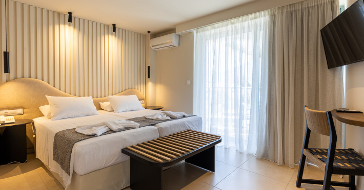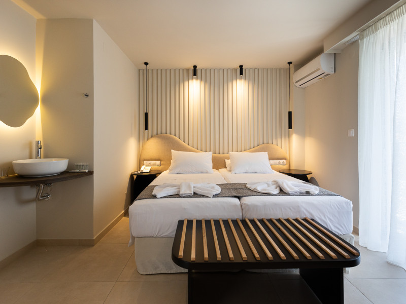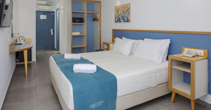 Alia Beach is a captivating hotel complex in Hersonissos, offering a blend of attractive rooms and suites. Its privileged position in the seaside area of Hersonissos makes it the ideal place for couples and families to vacation. Its location on the most advantageous spot of Hersonissos Bay is unparalleled. It is right in front of the endless Cretan Sea and just three minutes from the town, medical center, and public transportation. Alia Beach Hotel offers easy access to the finest parts of Crete. The hotel's unbeatable location will satisfy even the most demanding travelers.