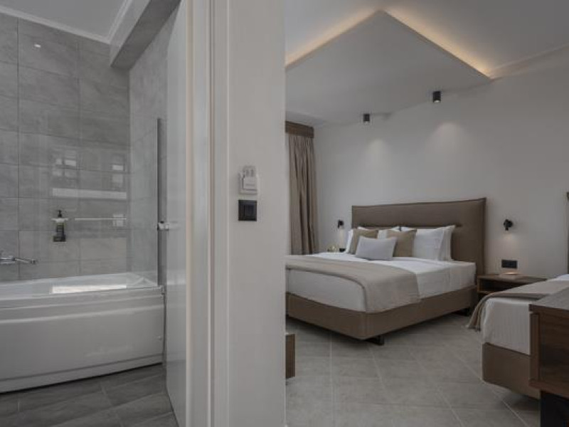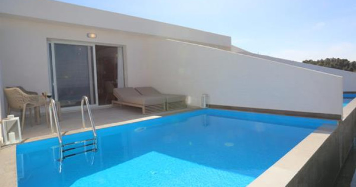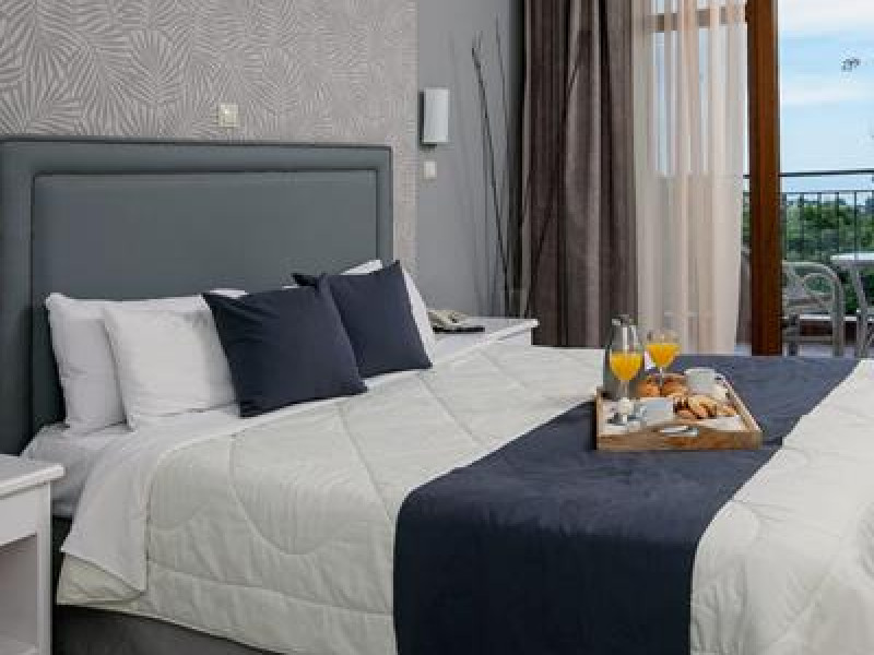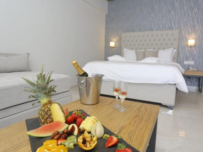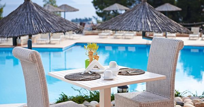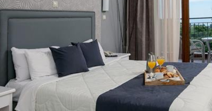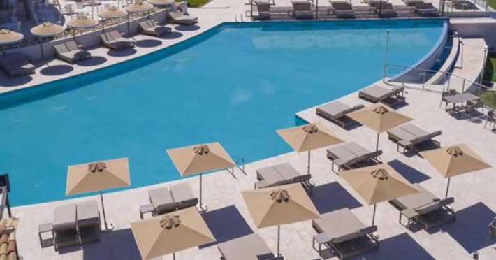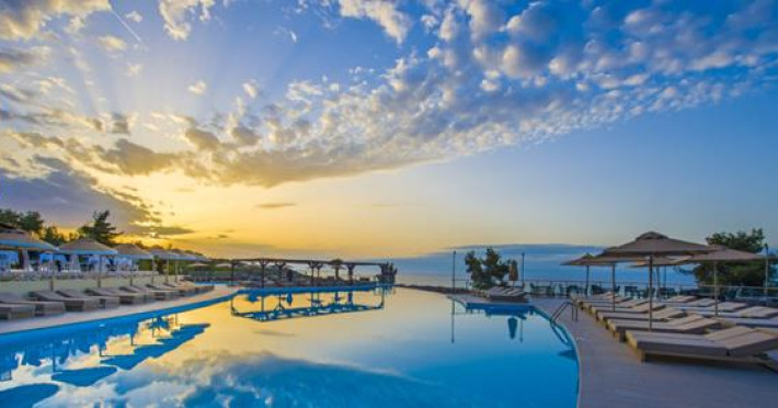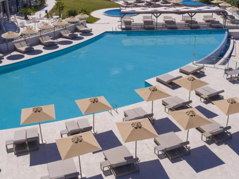 Alia Palace Luxury Hotel and Villas is located at Pefkohori, at the Kassandra peninsula, the first of the three magical peninsulas of Chalkidiki. Built at the top of the village, it has a magical view of Pefkohori, the Toroneos gulf and Sithonia. Its privileged position offers a quick access to shops, restaurants and the night life of Pefkohori, and at the same time it offers its adults (16+) guests the opportunity to relax and rest in a quiet and idyllic environment. Alia Palace is a hotel where modern architecture has been combined harmoniously with the natural environment of the area.Full description