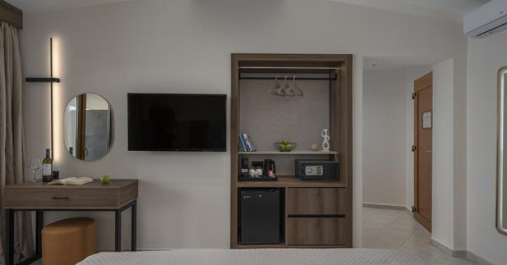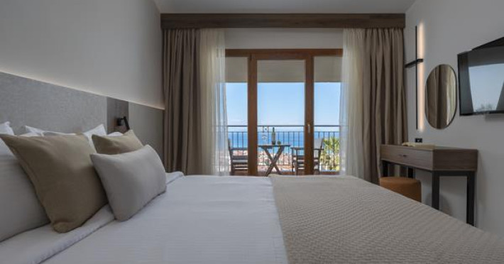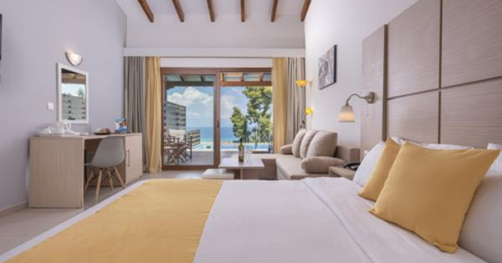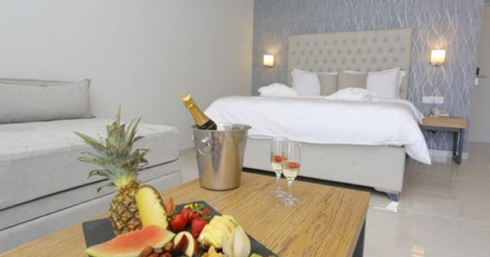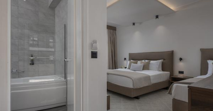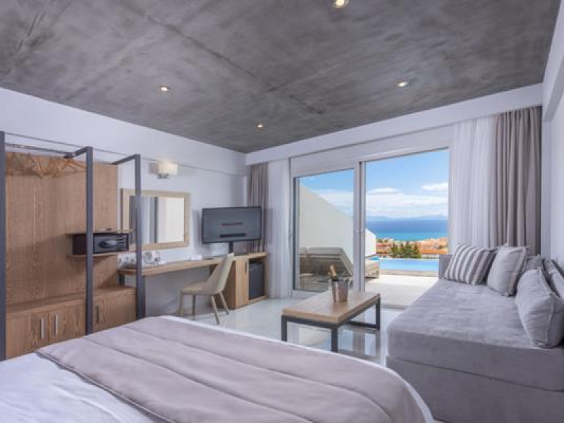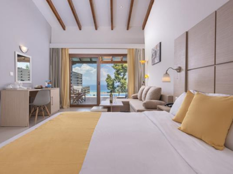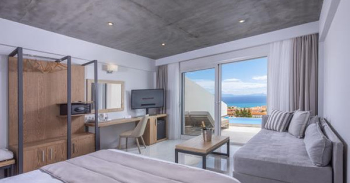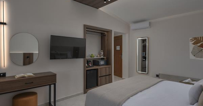 Alia Palace Luxury Hotel and Villas is located at Pefkohori, at the Kassandra peninsula, the first of the three magical peninsulas of Chalkidiki. Built at the top of the village, it has a magical view of Pefkohori, the Toroneos gulf and Sithonia. Its privileged position offers a quick access to shops, restaurants and the night life of Pefkohori, and at the same time it offers its adults (16+) guests the opportunity to relax and rest in a quiet and idyllic environment. Alia Palace is a hotel where modern architecture has been combined harmoniously with the natural environment of the area.Full description