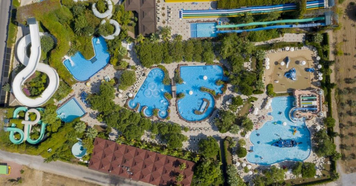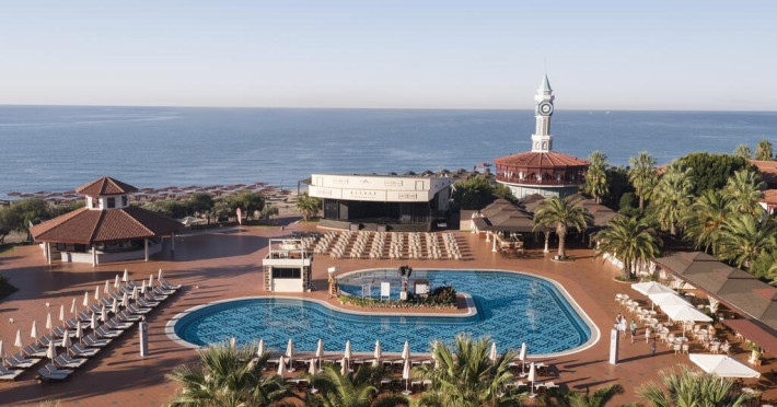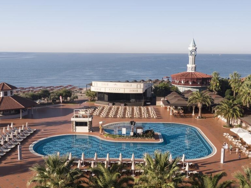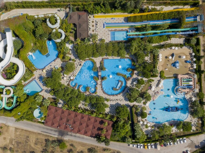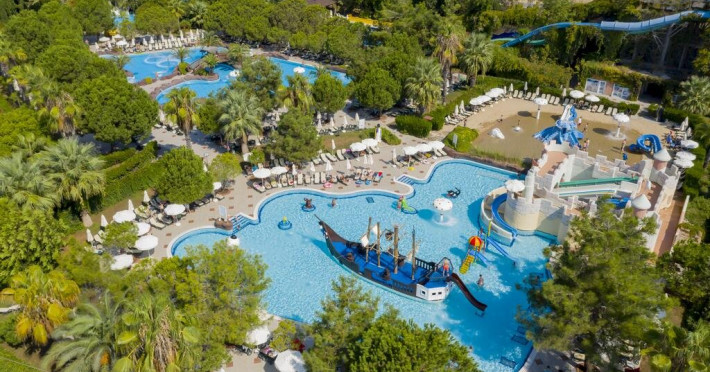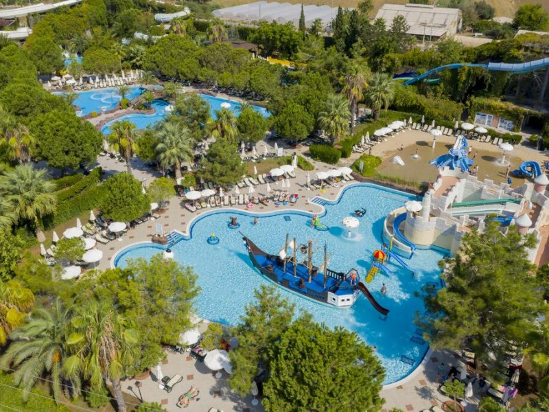 Construit in anii 1991 (Club Manavgat), respectiv 1995 (Club Park Manavgat) si renovat in 2008, cu o suprafata totala de 380.000 mp, complexul dispune de 900 de camere, repartizate astfel: ? camere standard (suprafata de 26 mp); ? camere pentru persoane cu dizabilitati; ? camere superioare (suprafata de 26 mp); ? camere family alcatuite din doua camere standard conectate, cu usa intre ele; ? camera family superioare (suprafata 40 mp, un dormitor cu pat dublu si unul cu paturi separate), cu usa intre ele. Localizare: pe malul marii, la 90 km de centrul orasului Antalya si la 85 km de aeroport. Hotelul se afla situat la 12 km de Manavgat, 17 km de Side si 60 km de Alanya. Dotari camera: telefon, TV satelit, radio, minibar, aer conditionat, seif, uscator de par, balcon. Podeaua este din gresie sau marmura, internet wi-fi. Facilitati hotel: 3 restaurante principale, restaurant a la carte, restaurant pe plaja, 13 baruri, cafenea turceasca, o piscina exterioara mare si o piscina pentru relaxare, aquapark (25.000 mp cu 9 tobogane pentru adulti si 6 tobogane pentru copii, restaurant, bar, diverse distractii), mini club pentru copii (4-12 ani), baie turceasca, sauna, tenis de masa, mini fotbal, baschet, volei si fotbal pe plaja, jogging, darts, boccia, tir cu arcul, animatie, discoteca si discoteca in aer liber. Servicii cu plata: bauturile din import, sucuri din fructe la bar, rezervare restaurant a la carte, babysitter, telefon, centru de tenis (62 terenuri pe zgura) si echipamentul, spalatorie, masaj, doctor, sporturi acvatice, fotograf, sala de jocuri, fitness, biliard, fotbal, inchiriere masini, coafor si frizerie, centru comercial. Plaja de pietricele cu nisip. Sezlongurile, umbrelele si prosoapele sunt gratuite. Tenis: - in complexul Alibey Club/Park Manavgat exista 62 terenuri de tenis cu zgura; unul dintre ele este terenul central, care are si tribune pentru spectator; - exista si doua terenuri pe zgura si doua terenuri mini motorizate special pentru copii, dar si un perete de squash; - centrul de tenis este cel mai cunosc la nivel international, de pe coasta Mediteranei si este perfect atat pentru antrenamentul profesionistilor, dar si pentru amatori, pentru jocul in echipa sau singur; - scoala germana PCT, pe langa antrenamentele profesioniste pentru meciuri ofera si instructaj pentru diferite niveluri de pregatire, se ocupa de turnee saptamanale, etc; - in acest complex sportiv exista si magazin cu articole sportive (Adidas si Wilson), serviciu de racordare a rachetelor, inchirieri de rachete, un birou de informatii si un bar; alte facilitati sunt: masina de aruncat mingii, analiza pe calculator, cursuri cu metode speciale pentru copii; - toti instructorii de tenis detin certificate DTB/VDT. Aquapark: - construit pe o suprafata de 25.000 mp; - 9 tobogane pentru adulti si 6 tobogane pentru copii; - facilitati pentru adulti: space bowl, blakhole, rafting, tobogane pentru intreaga familie, bighole, kamikaze cu barcuta, kamikaze, topogane de mare inaltime, piscina cu diverse activitati; - facilitati pentru copii: mini kamikaze, mini tobogane, mini rafting, o nava a piratilor, diverse figurine de animale, loc de joaca pentru copii, piscina de nisip pentru bebelusi; - restaurant si bar. Alte informatii: - accesul in pantaloni scurti la cina nu este permis; - toate cartile de credit sunt acceptate; - animalele de companie nu sunt permise. Hotelul isi rezerva dreptul de a modifica conceptul in timpul sezonului fara a anunta in prealabil aceste modificari.Website: www.alibey.com