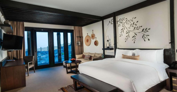 Complexul oferă vile luxoase cu piscină privată și suite cu balcon și vedere la munții Al Hajar. Unitățile de cazare au aer condiționat, TV cu ecran plat cu canale prin satelit, minibar, facilități de ceai/cafea și balcon sau terasă. Băile sunt prevăzute cu duș și cadă separate, articole de toaletă de lux Spa Alila și halate de baie pufoase. Toate camerele beneficiază de vedere panoramică la munte.