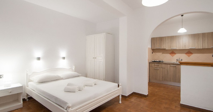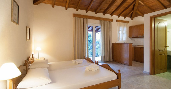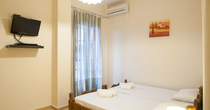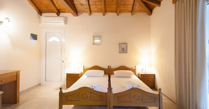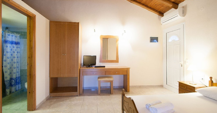 Facilitati vila: Vila Alissia este formata din 2 cladiri si o piscina. Piscina vilei dispune de dusuri, sezlonguri, umbrele, un mic umbrar si este inconjurata de gazon si flori de leandru, specifice insulei. Prima cladire are 4 studiouri, iar cea de-a doua cladire are parter si 2 etaje unde se afla 6 studiouri si 2 apartamente.