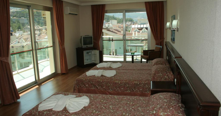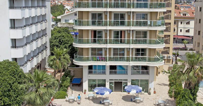 Este situat la 90 km de Aeroportul Dalaman, la 1 km de centrul orașului Marmaris, pe a două linie de la mare, de 90 metri peste drum de plajă municipală.