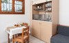 Alkinoos Beach Hotel servește zilnic un mic dejun tip bufet în zona de luat masa. La proprietate există un snack-bar care oferă cafea, băuturi și gustări. Masa poate fi servită atât în interior, cît si în aer liber, pe terasă, în funcție de vreme. Oaspeţii îşi pot pregăti micul dejun şi alte mese şi le pot savura chiar pe balcon. Pentru cei care doresc să ia masa în natură, Alkinoos Beach Hotel pune la dispoziție o zonă de picnic.