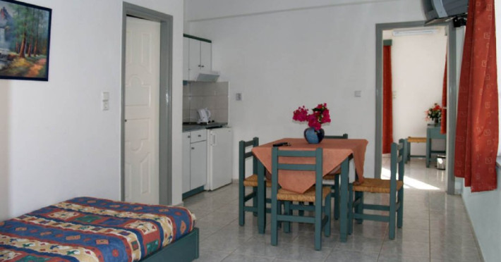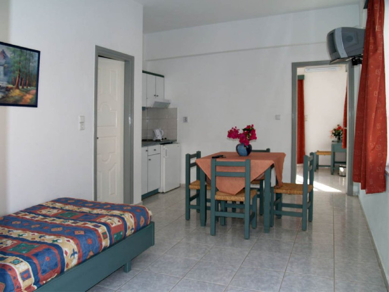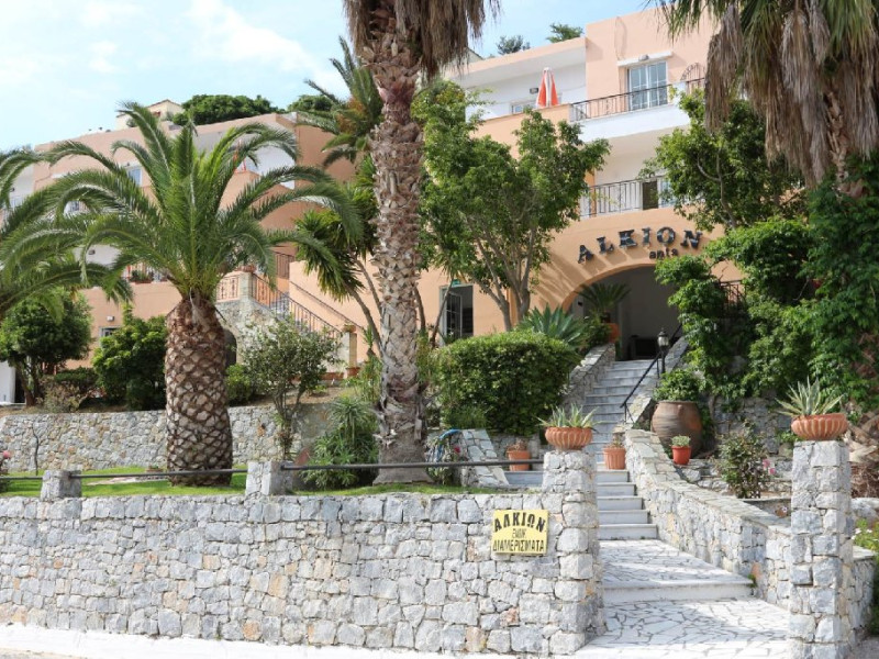 Descriere: Alkion este un complex format din 15 studiouri si apartamente confortabile.Localizare: Apartamentele Alkion sunt localizate in Exopolis, la 2 km de Georgioupolis si la 55 km de aeroportul din Chania.Plaja: Hotelul este situat la aproximativ 2 km de frumoasa plaja de nisip din Georgioupolis. Sezlongurile si umbrelele sunt cu plata. Sporturi acvatice cu plata.