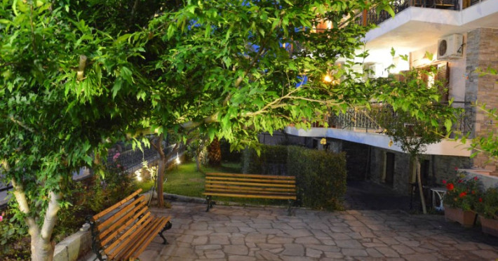 Fiind localizat in statiunea Kalithea, si la nu foarte mare distanta de plaja studio Alkionis iti ofera posibilitatea realizarii unui concediu reusit, condimentat cu viata destul de agitata din centrul frumoasei statiuni.Descriere