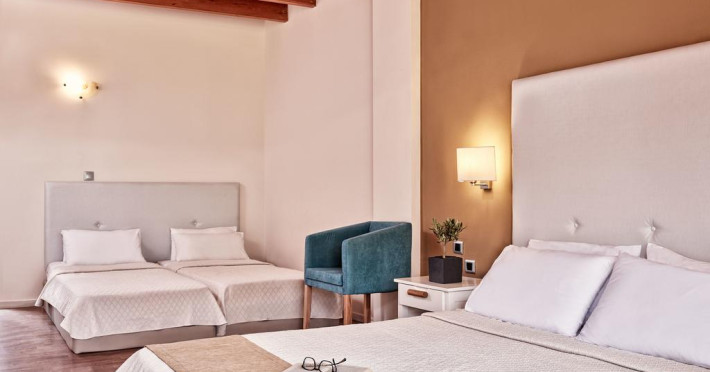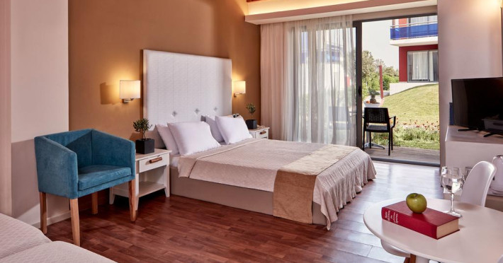 Sunt disponibile 305 camere. Fiecare cameră dispune de minibar și cană-fierbător. Oaspeții pot solicita serviciul de room service pentru a servi masa sau diverse băuturi. Camerele confortabile de la All Senses Nautica Blue Exclusive Resort And Spa au pardoseală de gresie/ marmură, aer condiționat, Tv cu canale prin satelit și seif. În camere există baie cu cadă sau duș ce are în dotare foehn și articole de toaletă gratuite. Unele camere au balcon cu vedere la mare sau la piscină. Oaspeții au acces gratuit la serviciul Wi-fi în camere. Curățenia in cameră se face zilnic. Toate camerele spațioase de la All Senses Nautica Blue Exclusive Resort And Spa au zonă de relaxare cu canapea, ceea ce oferă un plus de confort. Proprietatea oferă camere pentru familie cu o suprafață mai mare și un număr mai mare de paturi față de cele standard. Se pot rezerva de asemenea camere pentru nefumători.