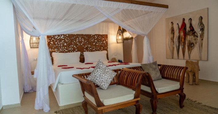 Alma Boutique Hotel se află in Jambiani, la cațiva pași de Plaja din Paje, și oferă un centru de fitness, o grădină, un lounge comun și parcare privată gratuită. Proprietatea oferă un restaurant, precum și un bar și facilități pentru sporturi acvatice. Proprietatea are o recepție deschisă non-stop, servicii de transport de la/la aeroport, room-service și WiFi gratuit in intreaga proprietate.