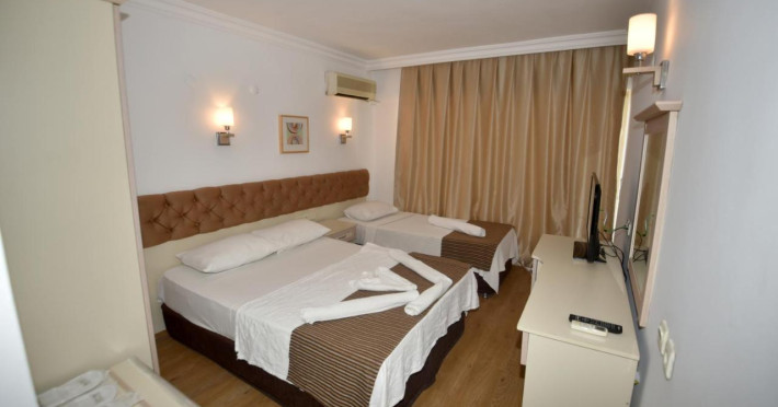 Localizare: Hotelul se află în apropiere de Marmaris Public Beach, la 49 km de Aeroportul Dalaman. Facilități hotel: piscina exterioara, acces imediat la plajă, camere de familie, WiFi gratuit inclus, transfer de la și/sau la aeroport, spa și centru de wellness, parcare gratuită, sală de fitness, bar, zonă de plajă privată. Dotări camere: balcon, vedere la grădină, aer condiționat, baie privată, TV cu ecran plat, terasă, Minibar. Servicii contra cost: serviciu de transfer, serviciu de curățătorie și călcătorie, snorkelling, scufundări, facilități sporturi nautice, pescuit, echipament tenis, biliard, masaj, sală fitness, spa și centru wellness, saună, jacuzzi. IMPORTANT: Descrierea hotelului se bazează pe detaliile disponibile la momentul pregătirii tarifelor pentru sezonul turistic ce urmează a se desfășura și are caracter pur informativ. Hotelul poate aduce modificări de structură, denumiri camere, tip servicii incluse/neincluse și altele, fără a notifica în prealabil. Pentru informațiile oficiale vă rugăm să consultați website-ul hotelului.Datorita dinamicitatii domeniului disponibilitatea ofertelor se modifica de la un moment la altul. De aceea ofertele sunt valabile in limita locurilor disponibile. Agentia nu este responsabila pentru eventualele neconcordante care pot aparea intre informatiile privind tarifele si alte detalii din site si informatiile primite in agentie. In aceste cazuri vor avea prioritate, intotdeauna, informatiile primite in agentie.