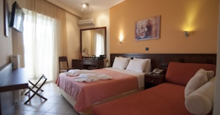Near Ãgios Minás. With a stay at Almira Mare in Chalcis, youll be near the beach, just steps from Ãgios Minás and a 2-minute drive from Valopoúla. This 4-star hotel is 1.2 mi (2 km) from Pelagos and 1.4 mi (2.3 km) from Rodiés. Make yourself at home in one of the 32 air-conditioned rooms featuring minibars and plasma televisions. Rooms have private furnished balconies. Complimentary wireless Internet access is available to keep you connected. Private bathrooms have complimentary toiletries and hair dryers. Satisfy your appetite for lunch or dinner at the hotels restaurant, or stay in and take advantage of the 24-hour room service. Relax with a refreshing drink from the poolside bar or one of the 2 bars/lounges. Cooked-to-order breakfasts are available daily from 7 AM to 10:30 AM for a fee. Take advantage of recreation opportunities such as a seasonal outdoor pool or take in the view from a terrace and a garden. Additional amenities at this hotel include complimentary wireless Internet access, a television in a common area, and tour/ticket assistance.Datorita dinamicitatii domeniului disponibilitatea ofertelor se modifica de la un moment la altul. De aceea ofertele sunt valabile in limita locurilor disponibile. Agentia nu este responsabila pentru eventualele neconcordante care pot aparea intre informatiile privind tarifele si alte detalii din site si informatiile primite in agentie. In aceste cazuri vor avea prioritate, intotdeauna, informatiile primite in agentie.