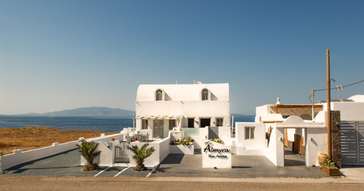 Welcome to Almyra Suites, your serene retreat on Santorini’s northeastern coast, directly overlooking the pristine Baxedes black sand beach. Perched on the northeastern edge of Santorini, Almyra Suites was born out of a deep love for the island’s untamed beauty and timeless elegance. Tucked away from the crowds, yet close enough to the heart of Oia, our boutique retreat invites you to experience a quieter, more intimate side of Santorini—a place where the rhythms of the sea and the whispers of the wind create a melody of relaxation.Each of our seven suites tells a story of Cycladic tradition and modern sophistication.Our sun-kissed deck, infinity pool, and private path to the beach are designed for moments of pure tranquility, while our personalized service ensures your every need is met with care. Whether it’s arranging a transfer, suggesting hidden gems to explore, or simply sharing the history of this enchanting island, we are here to make your stay unforgettable.Welcome to Almyra Suites, your serene retreat on Santorini’s northeastern coast, directly overlooking the pristine Baxedes black sand beach. Perched on the northeastern edge of Santorini, Almyra Suites was born out of a deep love for the island’s untamed beauty and timeless elegance. Tucked away from the crowds, yet close enough to the heart of Oia, our boutique retreat invites you to experience a quieter, more intimate side of Santorini—a place where the rhythms of the sea and the whispers of the wind create a melody of relaxation.Each of our seven suites tells a story of Cycladic tradition and modern sophistication.Our sun-kissed deck, infinity pool, and private path to the beach are designed for moments of pure tranquility, while our personalized service ensures your every need is met with care. Whether it’s arranging a transfer, suggesting hidden gems to explore, or simply sharing the history of this enchanting island, we are here to make your stay unforgettable.