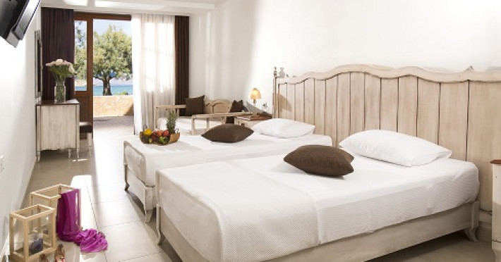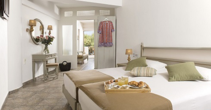 Almyrida Sudios dispune de camere spațioase, cu o notă traditionala. Toate camerele dispun de un balcon cu vedere directă la mare, paturi duble sau twin, Aer condiționat și încălzire controlate individual, WiFi, TV prin satelit, mini frigider, baie sau duș, uscător de păr, seif, telefon.