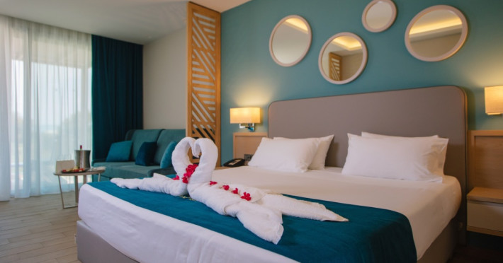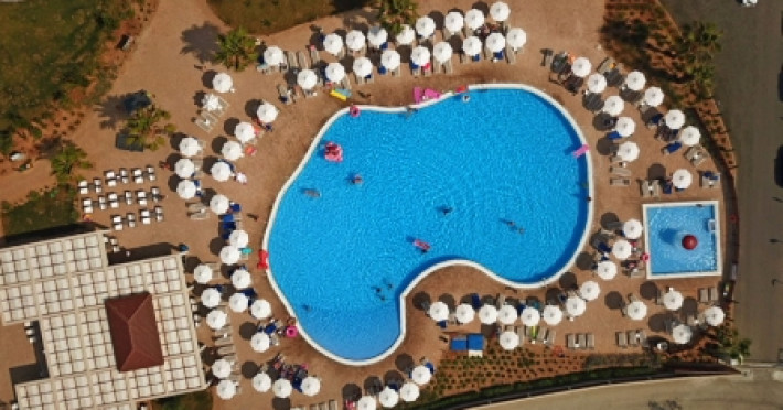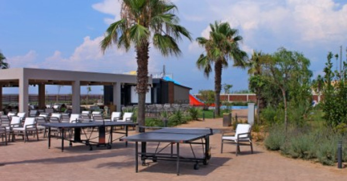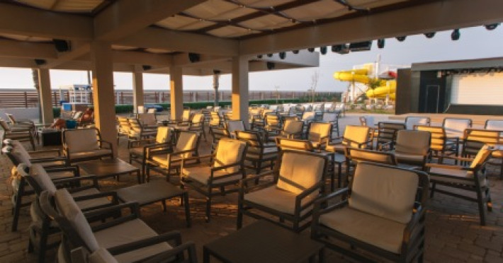 Surrounded by palm trees, the Pool bar is ideally located between the main pool and the waterslides next to the beach front. Our guests can enjoy chilling tunes, light snacks, ice creams and thirst-quenching cocktails and keep cool in the intense summer heat. Definitely the place to be during the day!