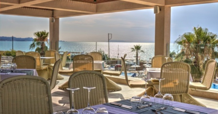 THE RESTAURANT Ambrosia Restaurant provides delicious modern European cuisine that focuses on celebrating the finest ingredients. Choose to dine from our à la carte menu for lunch or for a taste of some of our most loved dishes. Non-meat eaters can delight in our carefully created vegetarian menu (available on request). We offer an extensive list of fine wines, featuring bottles from local Corfiot to International fine wines.