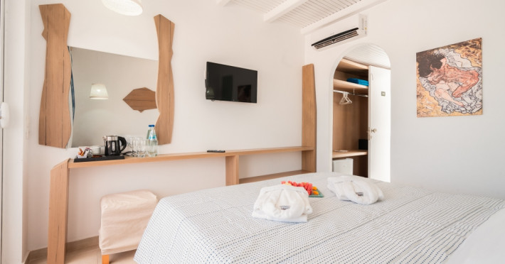 Sunt disponibile 49 camere. Camerele confortabile de la Aloe Hotel sunt dotate cu pardoseală de gresie/ marmură, aer condiționat, Tv și seif. Fiecare cameră dispune de cană pentru prepararea apei calde. Oaspeții pot solicita serviciul de room service pentru a servi masa sau diverse băuturi. Unele camere au balcon, cu vedere la piscină, unde oaspeții se pot relaxa în voie. În camere există baie cu cadă sau duș ce are în dotare articole de toaletă gratuite. Oaspeții au acces gratuit la serviciul Wi-fi în camere. Curățenia in cameră se face zilnic.