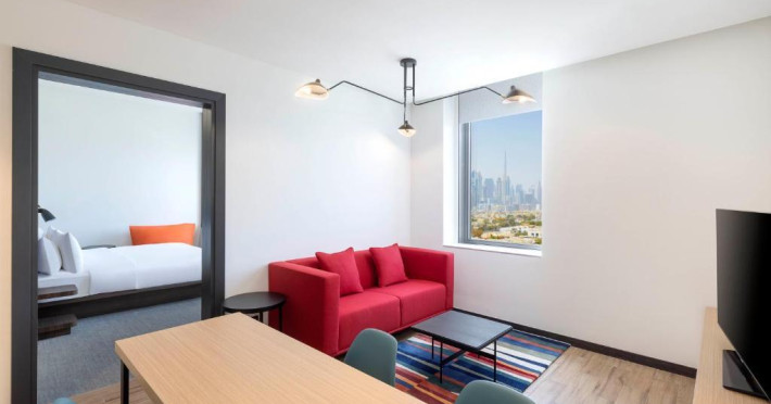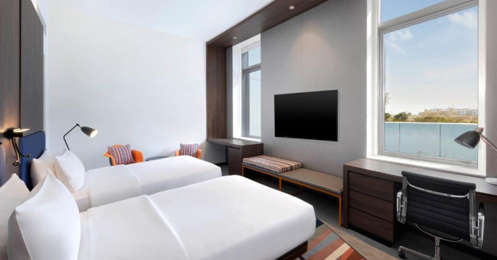 A bold & vibrant social scene awaits you at Aloft Al Mina, Dubai. Located in a hip central neighborhood minutes away from Downtown Dubai, Aloft Al Mina is the place to be seen in. Embrace the upbeat lifestyle of Aloft in the globe's most glamorous city, as our 4-star boutique hotel offers easy-breezy access to Dubai's famed commercial & popular local attractions like the Dubai Mall, Burj Khalifa, the Gold Souk, La Mer & Bur Dubai.Stay connected while in Dubai with free hi-speed Wi-Fi access. Re:Charge at the well-equipped fitness center or laze back in our outdoor infinity pool overlooking a picturesque skyline Dubai. Whether traveling for business or leisure, you'll enjoy an exceptional stay at Aloft Al MinaA bold & vibrant social scene awaits you at Aloft Al Mina, Dubai. Located in a hip central neighborhood minutes away from Downtown Dubai, Aloft Al Mina is the place to be seen in. Embrace the upbeat lifestyle of Aloft in the globe's most glamorous city, as our 4-star boutique hotel offers easy-breezy access to Dubai's famed commercial & popular local attractions like the Dubai Mall, Burj Khalifa, the Gold Souk, La Mer & Bur Dubai.Stay connected while in Dubai with free hi-speed Wi-Fi access. Re:Charge at the well-equipped fitness center or laze back in our outdoor infinity pool overlooking a picturesque skyline Dubai. Whether traveling for business or leisure, you'll enjoy an exceptional stay at Aloft Al Mina