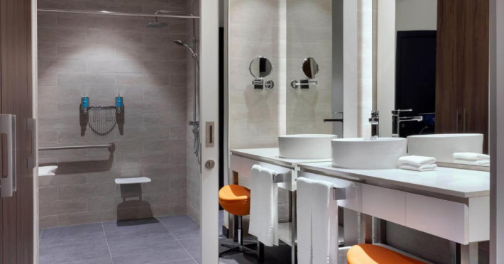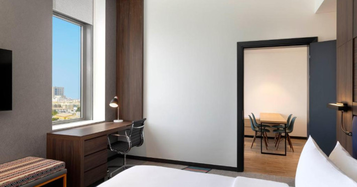 Camerele luminoase de la Aloft Al Mina Hotel sunt dotate cu aer condiționat, Tv și seif. Un minibar și o mașină pentru preparare cafea sau ceai se află în fiecare cameră. Oaspeții pot solicita serviciul de room service pentru a servi masa sau diverse băuturi. Oaspeții au acces gratuit la serviciul Wi-fi în camere. În camere există baie cu cadă sau duș prevăzută cu foehn. Unele camere au vedere oraș. Curățenia in cameră se face zilnic. Proprietatea oferă camere pentru familie cu o suprafață mai mare și un număr mai mare de paturi față de cele standard.