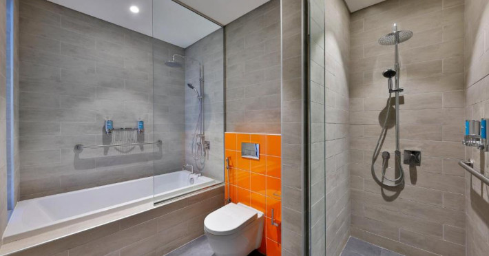 Aloft Al Mina Hotel are acces la o plajă publică.