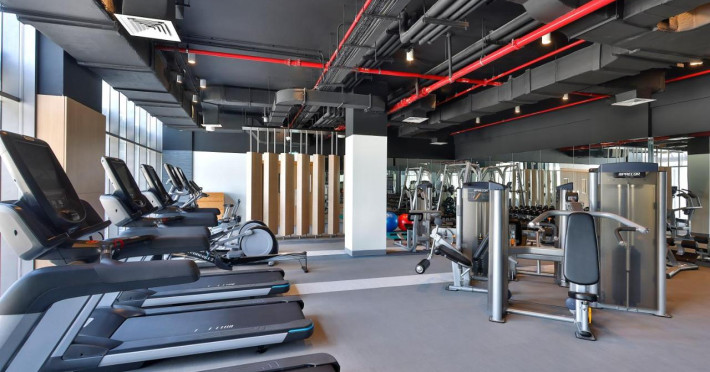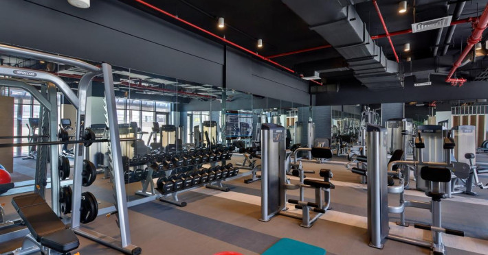 O sală de fitness cu echipamente necesare pentru o gamă variată de exerciții fizice este la dispoziția celor interesați.