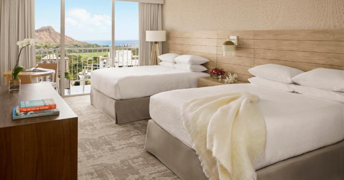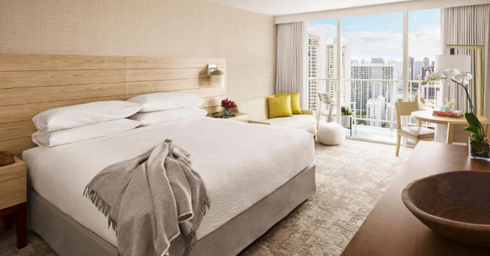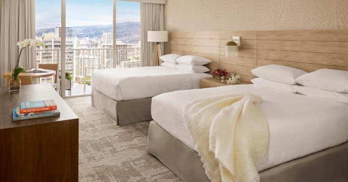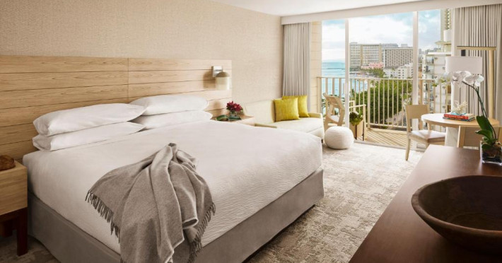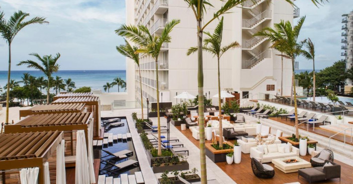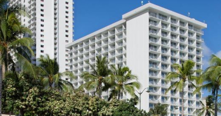 ‘Alohilani Resort Waikiki Beach pune la dispoziție cazare pe plajă in Honolulu. Complexul are un bar și mai multe restaurante, iar in mijlocul holului există un acvariu de 1.000.000 de litri cu două niveluri, apă sărată și o mare varietate de pești colorați din regiunea Hawaii. Multe camere și suite oferă vedere directă la Oceanul Pacific și la Diamond Head.