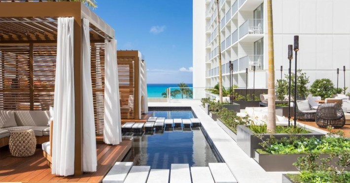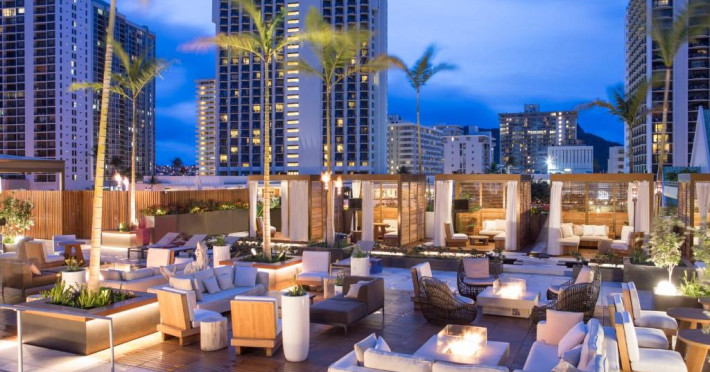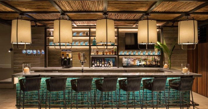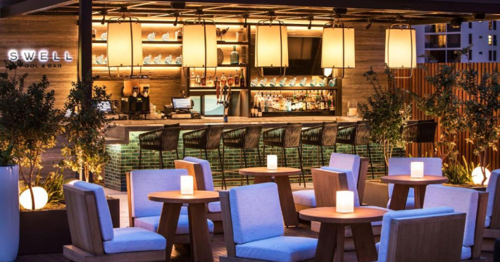 Swell Pool & Bar pune la dispoziția oaspeților o piscină infinită cu apă sărată, o cadă cu hidromasaj, pavilioane private și muzică live in fiecare seară, precum și vedere la celebra plajă Waikiki.