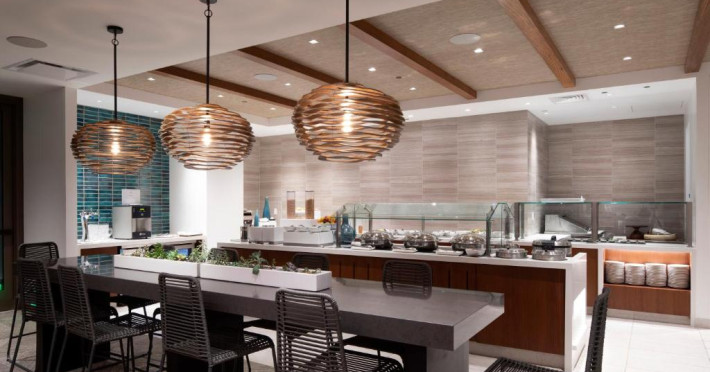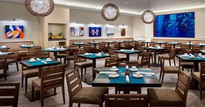 Oaspeții pot lua masa la mai multe restaurante disponibile. Morimoto Asia servește mancăruri asiatice, iar la Momosan se oferă preparate de tip ramen intr-un cadru mai informal.