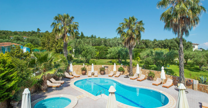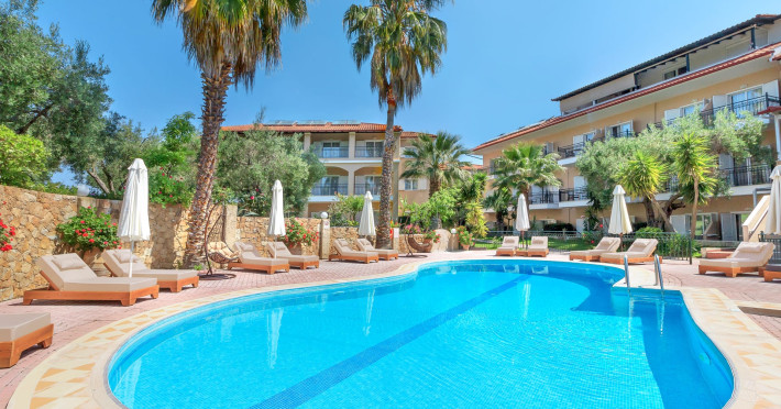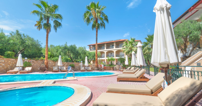 Aloni is a pleasant family-run hotel in Pefkohori Halkidiki. Our friendly and warm atmosphere is ideal, making our place perfect for those seeking relaxation. The beach is a 10 minutes walk distance and the same goes for the village center, shops and cosmopolitan life. Every room overlooks the Hotel's garden, the olive groves and the swimming pool, where you can relax and enjoy drinks, snacks and ice-cream from the bar. The rooms are comfortable and spacious for 2-3 people and family roοms for up to 4 people with air-conditioning, tv, kitchenette, shower and balcony. At the reception there are safety deposit boxes.Datorita dinamicitatii domeniului disponibilitatea ofertelor se modifica de la un moment la altul. De aceea ofertele sunt valabile in limita locurilor disponibile. Agentia nu este responsabila pentru eventualele neconcordante care pot aparea intre informatiile privind tarifele si alte detalii din site si informatiile primite in agentie. In aceste cazuri vor avea prioritate, intotdeauna, informatiile primite in agentie.