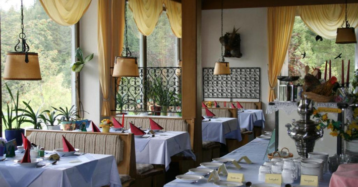 Alpenhotel Beslhof serveste zilnic un bufet de mic dejun. Restaurantul hotelului oferă seara mancăruri bavareze regionale si are un șemineu și vedere panoramică la Alpii Berchtesgaden.