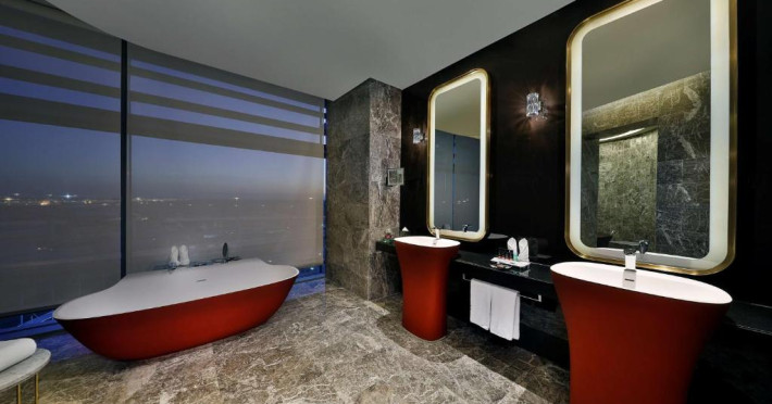 Fiecare cameră are ferestre din podea pană in tavan, zonă de lucru, TV de 48 inch și baie din marmură cu cadă și duș separate. Pentru spațiu și confort maxim, Suita Ambassador și Suita Prezidențială au două dormitoare, băi supradimensionate și zone mari de living și de luat masa pentru un sejur perfect.