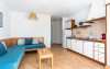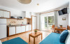 Zona de living include o canapea extensibilă pe colț, masă și TV cu ecran plat, iar chicineta este dotată cu frigider mic, cuptor cu microunde, plită și ustensile de bucătărie. De asemenea, este disponibil un aparat de cafea.