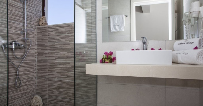 Althea Village hotel is a stunning 4* family holiday summer resort, located in the traditional village of Daratsos, only 4km away from Chania town center.A unique combination of 155 new and recently fully renovated rooms, apartments, family rooms, junior suites, and suites.Standing in a beautiful landscape of gardens, flowers, paths and multicolored alleys. Located only 600m from the famous sandy and organized beach of Agioi Apostoloi.Designed to reflect a Greek traditional village, Althea Village offers to all the guests, extraordinary facilities and amenities, such as, restaurants, bar, swimming pools, kids’ club, playroom, animation, massage therapies, gift and local products’ shop, tennis court, fitness center, daytime activities and sensational theme nights.