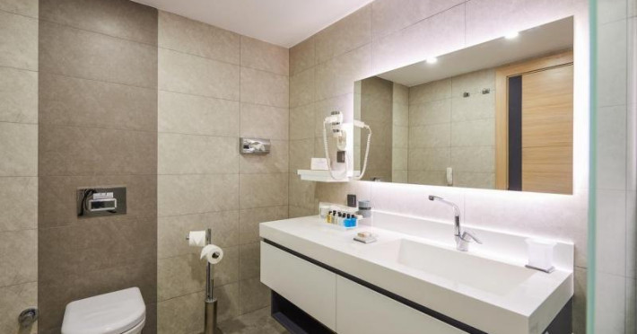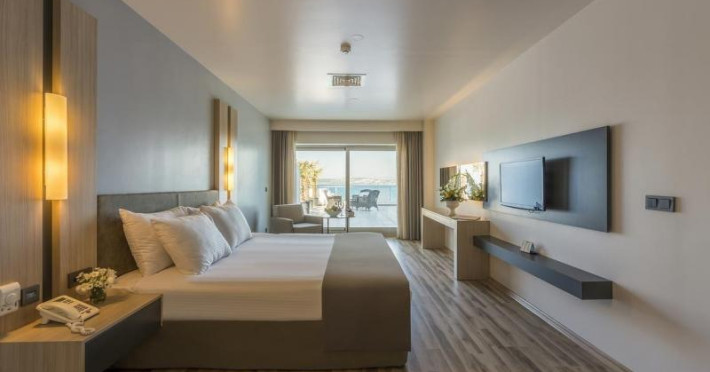 Hotelul pune la dispozitia turistilor 4 restaurante, centru SPA, plaja privata, terasa, gradina, piscina interioara (deschisa tot anul), baie turceasca, sala de fitness, sauna, bufet pentru copii, facilitati pentru sporturi nautice, windsurfing, teren de joaca pentru copii, teren de tenis.