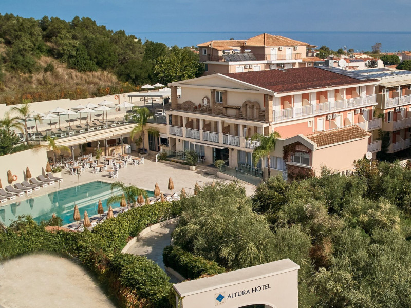 Altura Hotel, part of the Blue Collection Resorts, was fully renovated in 2017. It is an all-inclusive family friendly hotel, situated on a small hill offering magical views of the Tsilivi resort. The Hotel features 106 modern rooms of exceptional standards that offer several amenities the modern traveler needs. The surrounding area blends perfectly with the architecture of the three buildings, which are elegantly minimalistic with bright accents.Altura Hotel is located in the famous Tsilivi, just a short walk away from the insuperable namesake beach, which is awarded with a Blue Flag, only 5 kilometres from the port & Zakynthos town and 6 kilometres from Zakynthos National Airport, “D. Solomos”.Altura Hotel, part of the Blue Collection Resorts, was fully renovated in 2017. It is an all-inclusive family friendly hotel, situated on a small hill offering magical views of the Tsilivi resort. The Hotel features 106 modern rooms of exceptional standards that offer several amenities the modern traveler needs. The surrounding area blends perfectly with the architecture of the three buildings, which are elegantly minimalistic with bright accents.Altura Hotel is located in the famous Tsilivi, just a short walk away from the insuperable namesake beach, which is awarded with a Blue Flag, only 5 kilometres from the port & Zakynthos town and 6 kilometres from Zakynthos National Airport, “D. Solomos”.