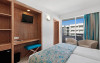În camere există un aparat de aer condiționat și un sistem de încălzire. De la balconul sau de pe terasa care se găsesc în majoritatea camerelor, clienții au o vedere spre stradă. Lucurile de valoare pot fi depozitate în siguranță într-un seif pus la dispoziție contra cost. În plus, există un telefon, canale prin satelit și WiFi. În băi se găsește un uscător de păr. Articolele de cosmetică creează un confort deosebit în băi. De asemenea, stau la dispoziție 8 camere adaptate pentru scaun rulant cu baie fără bariere. Pentru familiile cu copii stau la dispoziție camere de familie.