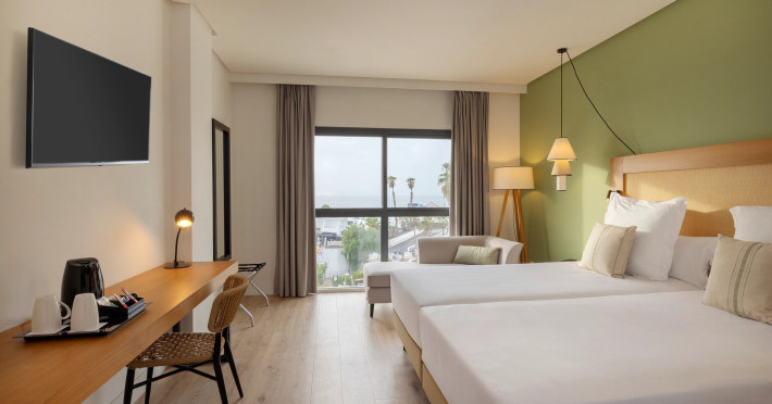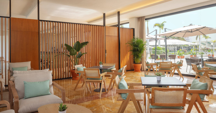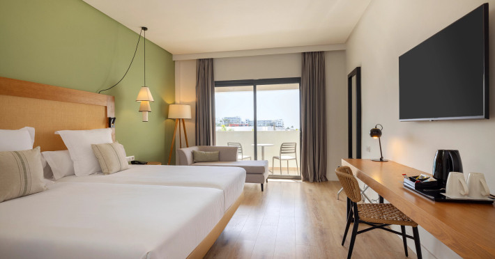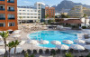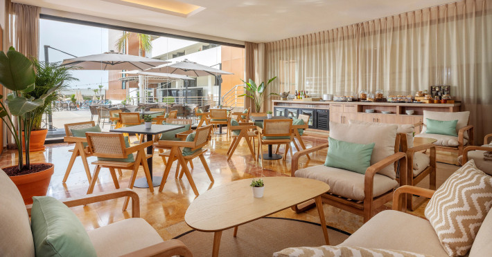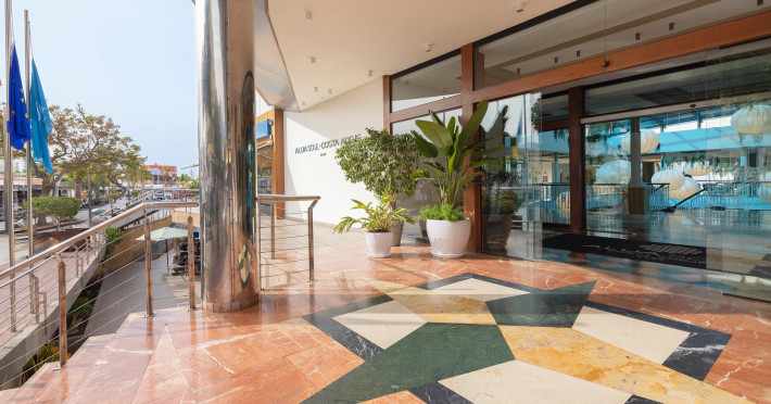 The hotel AluaSoul Costa Adeje is located approximately 50 m from a public sandy beach. The nearest restaurants and bars can be reached in a few minutes on foot. The old town is around 5 km away. You can find a range of shops and a supermarket directly on your doorstep. The beach is patrolled by a lifeguard. Here, there are sun umbrellas for a fee available. At the beach there is a bar serving refreshing drinks. There is a promenade where you can take leisurely walks. The air-conditioned hotel is equipped with a 24h reception (check-in is possible around the clock), a lobby bar, Wi-Fi, internet access, 6 lifts, a hairdresser as well as a TV lounge with satellite TV. In the outdoor area of the property you will find a supervised pool (open all year), where sun loungers, sun umbrellas and pool towels are available for free. For children there is also a children's pool with a non-swimming area. Furthermore, outside you can find a sun terrace on the roof of the building. You can store your valuables in the safe, and your luggage in the hotel`s storage room. There is also a laundry and ironing service available at an additional cost to customers. Ironing equipment can also be rented at the hotel for a fee. For your comfort there is a concierge service. If necessary, you can contact the medical centre at any time (for a fee). Guests at the accommodation can get a wake-up call from the hotel personnel. The energy supply is 220 Volts. For conventions and other business meetings, the hotel offers a business centre as well as EXTRA_FEE conference rooms with lectern, tables, printer, scanner, overhead projector as well as internet access. If you want to explore the holiday region, you can use the car and motorbike rental service close to the hotel. In addition, the hotel sells tickets for excursions. Dogs are the only pets allowed in the hotel (on request). For guests on their honeymoon, the hotel has special offers such as romantic dishes in the restaurant. In your hotel, a lot of focus is placed on sustainability. This includes the hotel`s own recycling bins and organic food and ecological meals. The hotel requires that all guests pay a deposit upon arrival. American Express, Euro/Master Card, Visa and EC cards are accepted as means of payment. Due to its barrier-free facilities , such as a sliding door in the entrance area, an automatic hotel door, barrier-free entrances, wheelchair accessible rooms, a wheelchair accessible lift and wheelchair-accessible bathrooms, the hotel is also suitable for wheelchair users. Catering As catering services the hotel offers all-inclusive, half board and breakfast only. Breakfast is offered from the buffet. Lunch and dinner are also served à la carte or from the buffet with starters, salads and desserts. Half board includes breakfast and dinner. All Inclusive Light includes coffee & tea, cake & pastries, beer as well as local alcoholic beverages. When booking all-inclusive, one meal in the à la carte restaurant is included. For the meals, there are a buffet restaurant with terrace (calorie-reduced, gluten-free and vegetarian dishes) and several bars, the cafeteria as well as the pool bar. The drinks menu of the hotel includes water, soft drinks, coffee and tea, beer and wine. Alcoholic beverages are not served in the hotel. Appropriate clothing is required for lunch and dinner. Distances- Discotheque: approximately at 3 km
