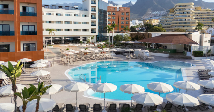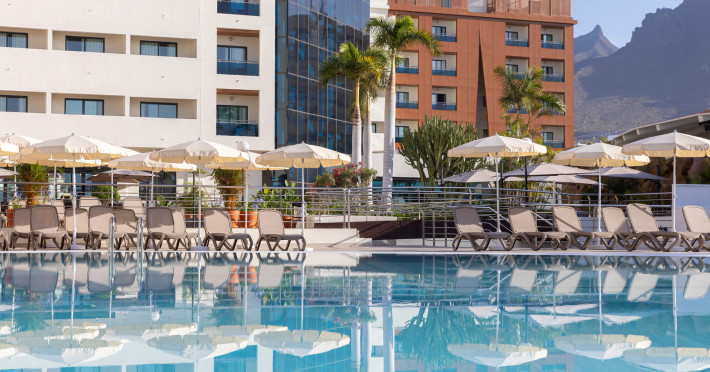 The hotel AluaSoul Costa Adeje is located approximately 50 m from a public sandy beach. The nearest restaurants and bars can be reached in a few minutes on foot. The old town is around 5 km away. You can find a range of shops and a supermarket directly on your doorstep. The beach is patrolled by a lifeguard. Here, there are sun umbrellas for a fee available. At the beach there is a bar serving refreshing drinks. There is a promenade where you can take leisurely walks. The air-conditioned hotel is equipped with a 24h reception (check-in is possible around the clock), a lobby bar, Wi-Fi, internet access, 6 lifts, a hairdresser as well as a TV lounge with satellite TV. In the outdoor area of the property you will find a supervised pool (open all year), where sun loungers, sun umbrellas and pool towels are available for free. For children there is also a children's pool with a non-swimming area. Furthermore, outside you can find a sun terrace on the roof of the building. You can store your valuables in the safe, and your luggage in the hotel`s storage room. There is also a laundry and ironing service available at an additional cost to customers. Ironing equipment can also be rented at the hotel for a fee. For your comfort there is a concierge service. If necessary, you can contact the medical centre at any time (for a fee). Guests at the accommodation can get a wake-up call from the hotel personnel. The energy supply is 220 Volts. For conventions and other business meetings, the hotel offers a business centre as well as EXTRA_FEE conference rooms with lectern, tables, printer, scanner, overhead projector as well as internet access. If you want to explore the holiday region, you can use the car and motorbike rental service close to the hotel. In addition, the hotel sells tickets for excursions. Dogs are the only pets allowed in the hotel (on request). For guests on their honeymoon, the hotel has special offers such as romantic dishes in the restaurant. In your hotel, a lot of focus is placed on sustainability. This includes the hotel`s own recycling bins and organic food and ecological meals. The hotel requires that all guests pay a deposit upon arrival. American Express, Euro/Master Card, Visa and EC cards are accepted as means of payment. Due to its barrier-free facilities , such as a sliding door in the entrance area, an automatic hotel door, barrier-free entrances, wheelchair accessible rooms, a wheelchair accessible lift and wheelchair-accessible bathrooms, the hotel is also suitable for wheelchair users. Catering As catering services the hotel offers all-inclusive, half board and breakfast only. Breakfast is offered from the buffet. Lunch and dinner are also served à la carte or from the buffet with starters, salads and desserts. Half board includes breakfast and dinner. All Inclusive Light includes coffee & tea, cake & pastries, beer as well as local alcoholic beverages. When booking all-inclusive, one meal in the à la carte restaurant is included. For the meals, there are a buffet restaurant with terrace (calorie-reduced, gluten-free and vegetarian dishes) and several bars, the cafeteria as well as the pool bar. The drinks menu of the hotel includes water, soft drinks, coffee and tea, beer and wine. Alcoholic beverages are not served in the hotel. Appropriate clothing is required for lunch and dinner. Distances